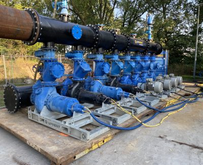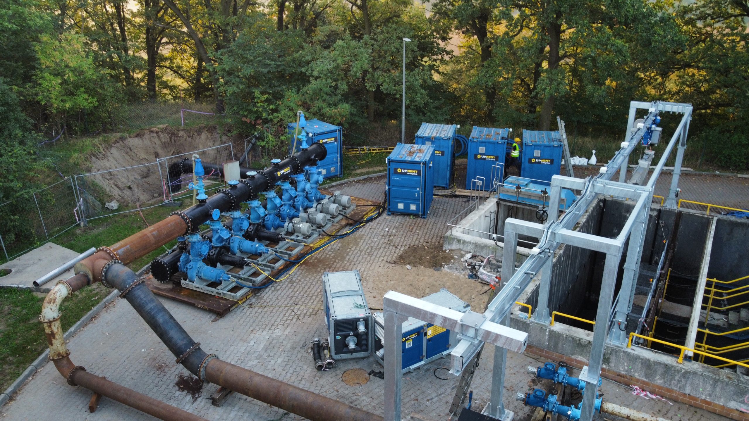 Projektis kasutati 8 Hidrostal F10 pumpa, igaühe võimsus 970 m³/h, ning BBA BA 150 KS pumpasid ajutiseks reovee pumpamiseks. Pumpade töö oli automaatne, juhitud 4 PLC juhtimiskonteineri kaudu, mis kontrollisid pumpade sagedust, võimaldades seadmetel töötada ilma operaatorita kogu projekti vältel. Pumpade konfiguratsioon võimaldas kogu süsteemi maksimaalseks võimsuseks 5 400 m³/h. Reovee transport vastuvõtukambrisse toimus 500 mm läbimõõduga, 25 m pikkuse torustiku kaudu, mille tarnis Renta Pumps. Projekti osana tarniti ka tipptasemel 500 kVA generaator koos automaatikaga, mis võimaldas generaatori käivitumist elektrikatkestuse korral.